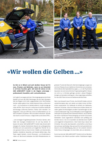 190 BEST OF BEST OF Portrait xxx Z%u00fcrcher UnterlandSo t%u00f6nt es in B%u00fclach und weit dar%u00fcber hinaus bei Firmen, Privaten und Beh%u00f6rden, wenn es um Sicherheit in all ihren Facetten geht. Seit bald 30 Jahren ist die GSD%u00a0 allSECURITY%u00a0 GmbH in der Region unterwegs %u2013 professionell, freundlich, acht- und aufmerksam. Um%u2019s gleich vorwegzunehmen: Die eingangs genannte Farbe bezieht sich auf die GSD-Fahrzeuge, die aus dem Strassenbild der Region nicht mehr wegzudenken sind. Die Mitarbeitenden selber gehen ihrer Arbeit klassisch blau-uniformiert nach %u2013 mit Ausnahme im Verkehrsdienst, da gilt orange gem%u00e4ss ASTRA. Doch Vorsicht: Uniformes Aussehen bedeutet keineswegs uniformes Denken, F%u00fchlen oder Handeln. Im Gegenteil: %u00abAuf uns trifft das nicht im Entferntesten zu%u00bb erkl%u00e4rt Inhaberin Jil%u00a0Gerber. %u00abWir sind alles Individuen. Gerade das macht uns als Firma aus.%u00bb Gegr%u00fcndet wurde diese 1996 %u2026%u2026 vom einstigen Flughafenpolizisten Christian Gerber, dem Vater der heutigen Inhaberinnen Jil und Joy Gerber. Er baute mit seiner GSD%u00a0allSECURITY%u00a0GmbH (das K%u00fcrzel steht %u00fcbrigens f%u00fcr Gerber Sicherheits-Dienst) ein umfangreiches Portfolio auf und avancierte zum begehrten Partner f%u00fcr einen grossen Kreis an Kund:innen: St%u00e4dte und Gemeinden, Spit%u00e4ler, Hotellerie, Gewerbe und Handel z%u00e4hlen dazu. Das Team regelt Verkehr, nimmt Personen- und Zufahrtskontrollen vor. Bei Events behalten die GSD-Mitarbeitenden im %u00abWir wollen die Gelben %u2026%u00bbgr%u00f6ssten Trubel die %u00dcbersicht. Bei Kontrollg%u00e4ngen sorgen sie mit ihrer Pr%u00e4senz f%u00fcr ein Gef%u00fchl der Sicherheit und schrecken Kriminelle ab. Bei Spezialbetreuungen, u. a. in der Psychiatrie, beweisen sie viel menschliches Fingerspitzengef%u00fchl. Dieses ist nicht nur in Kliniken gefragt, sondern %u00abdiese F%u00e4higkeit bringen wir bei jedem Auftrag ein.%u00bb Das mag einige verbl%u00fcffen, f%u00fcr das GSD-Team ist es eine Selbstverst%u00e4ndlichkeit.Denn man bewacht zwar Firmen, durchstreift Areale und entwickelt Konzepte, aber %u00abwir setzen uns dabei immer mit Menschen auseinander. Ein Geb%u00e4ude ist einfach ein Geb%u00e4ude%u00bb, relativiert Jil%u00a0Gerber. %u00abDoch erst Menschen erf%u00fcllen dieses mit Leben, geben ihm Wichtigkeit und Wert. Das beherzigen wir bei unserer Arbeit jeden Tag.%u00bb So sind Respekt vor dem Gegen%u00fcber verkn%u00fcpft mit authentischem Interesse hilfreich, wie Jil%u00a0Gerber bei einem n%u00e4chtlichen Patrouillengang auf einem Schulareal feststellte: %u00abZwei Jugendliche verhielten sich auff%u00e4llig und l%u00e4rmten herum. Von mir erwarteten sie deshalb einen Anpfi ff und reagierten entsprechend.%u00bb Doch keine Spur davon bei Jil%u00a0Gerber. Sie suchte das Gespr%u00e4ch, entsch%u00e4rfte so die Situation und zwar nachhaltig: %u00abDas war auch f%u00fcr mich pers%u00f6nlich ein Gewinn und eine Best%u00e4tigung, dass wir mit unserem menschlichen Fokus richtig liegen. Es ist ein Wert, den wir alle teilen.%u00bbSo ist man bei der GSD%u00a0allSECURITY%u00a0GmbH nicht an Rambos interessiert, die %u00abMacht aus%u00fcben wollen. Stattdessen legen