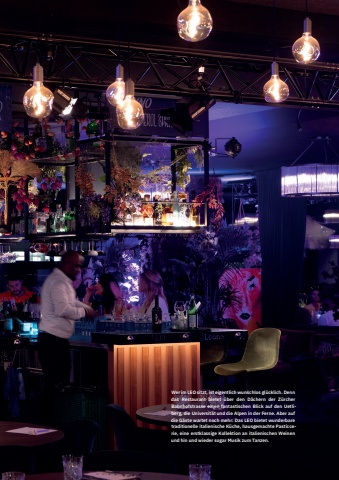 Wer im LEO sitzt, ist eigentlich wunschlos gl%u00fccklich. Denn das Restaurant bietet %u00fcber den D%u00e4chern der Z%u00fcrcher Bahnhofstrasse einen fantastischen Blick auf den Uetliberg, die Universit%u00e4t und die Alpen in der Ferne. Aber auf die G%u00e4ste wartet noch mehr: Das LEO bietet wunderbare traditionelle italienische K%u00fcche, hausgemachte Pasticcerie, eine erstklassige Kollektion an italienischen Weinen und hin und wieder sogar Musik zum Tanzen.